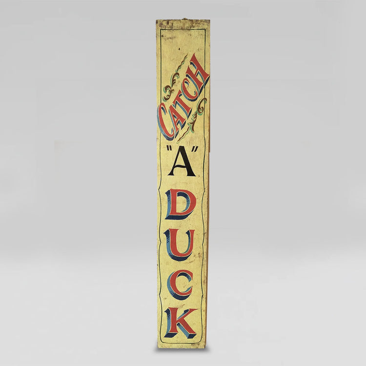 A fantastic reproduction of a very old Catch a Duck Carnival sign, we profesionally print these signs then mount them on MDF ready to hang on your wall.